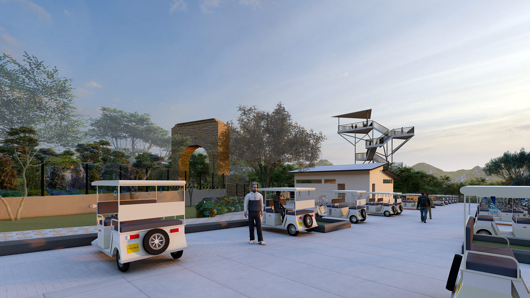 The area around the newly constructed integrated building needs to be planned for an organized arrival of a big gentry, sometimes even 5000 persons on peak days. The total development of 34000 Sqmt approximately includes the Parking area, Golambar area, commercial complex, a gate for Ghoda Katora, a Watch Tower and other surrounding areas including all the necessary services to be provided in the entire zone.