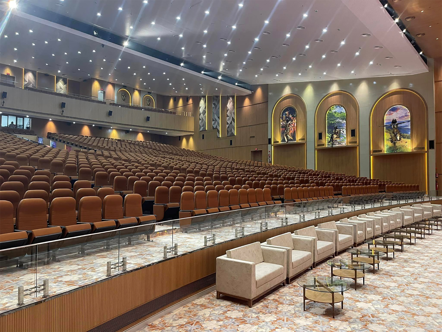 Actual pleasure of the architect is when the concept and design is transferred on ground exactly as per the visualization. The seating capacity of this cultural Auditorium hall is approximately 2400 including 320 seats in the balcony. Audience sightlines, accessibility and acoustics all make the auditorium a hugely precise art. The interior design compliments the architectural character of this and the original building. Equipped with all the latest and modern technologies, this Auditorium will be best of its kind in the entire region. A 50' X 21' video wall is installed for movies and creating special effects while performances