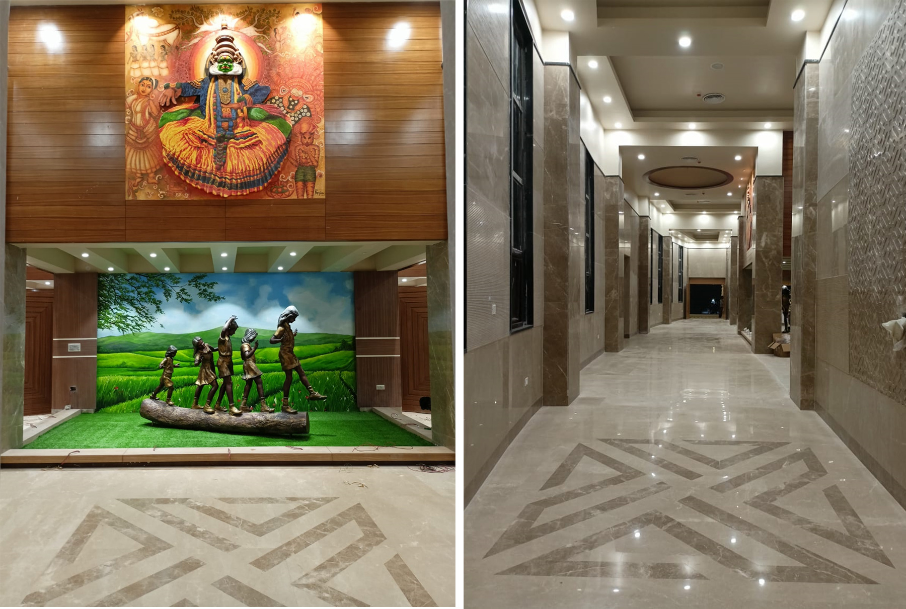 The entrance lobby is mesmerizing and welcoming with different kinds of artworks which gives life to interior. The artworks in the form of 8'-0" X 8'-0" installations are place in the Entrance lobbies.