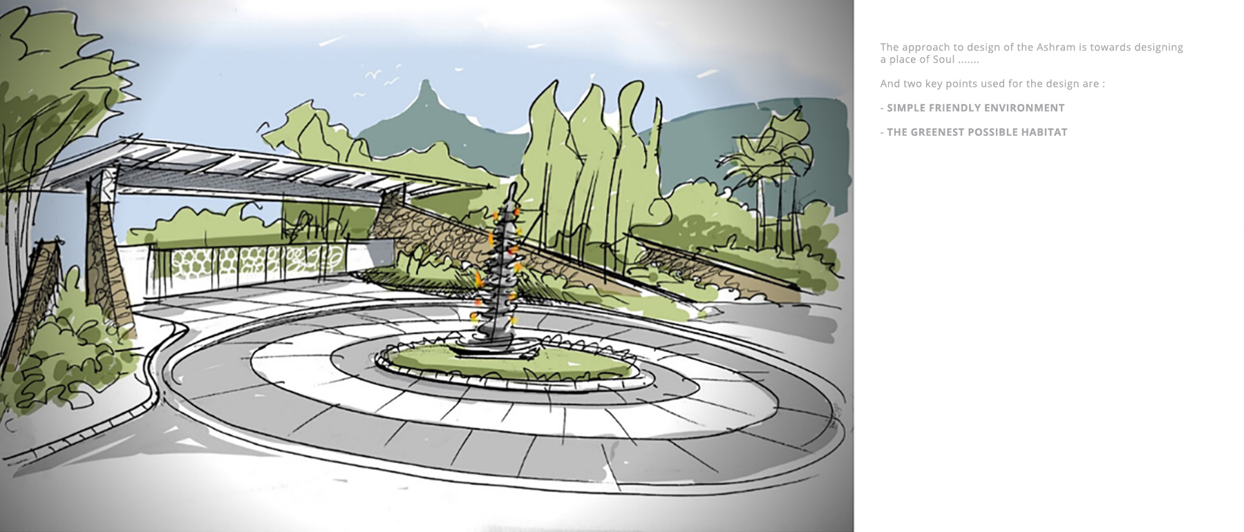 An attempt has been made to create an interactive interface with the external environment and has evolved from a rectangular plan with a Glass Pyramid roof. The pyramidical structure as Meditation Center is is considered as the shape with the 51 degree angle, is like store house of energy, which absorbs and radiates, giving a sense of hope to life. The deign attempts a seamless integratio of the play of light, form and the surrounding greenery.