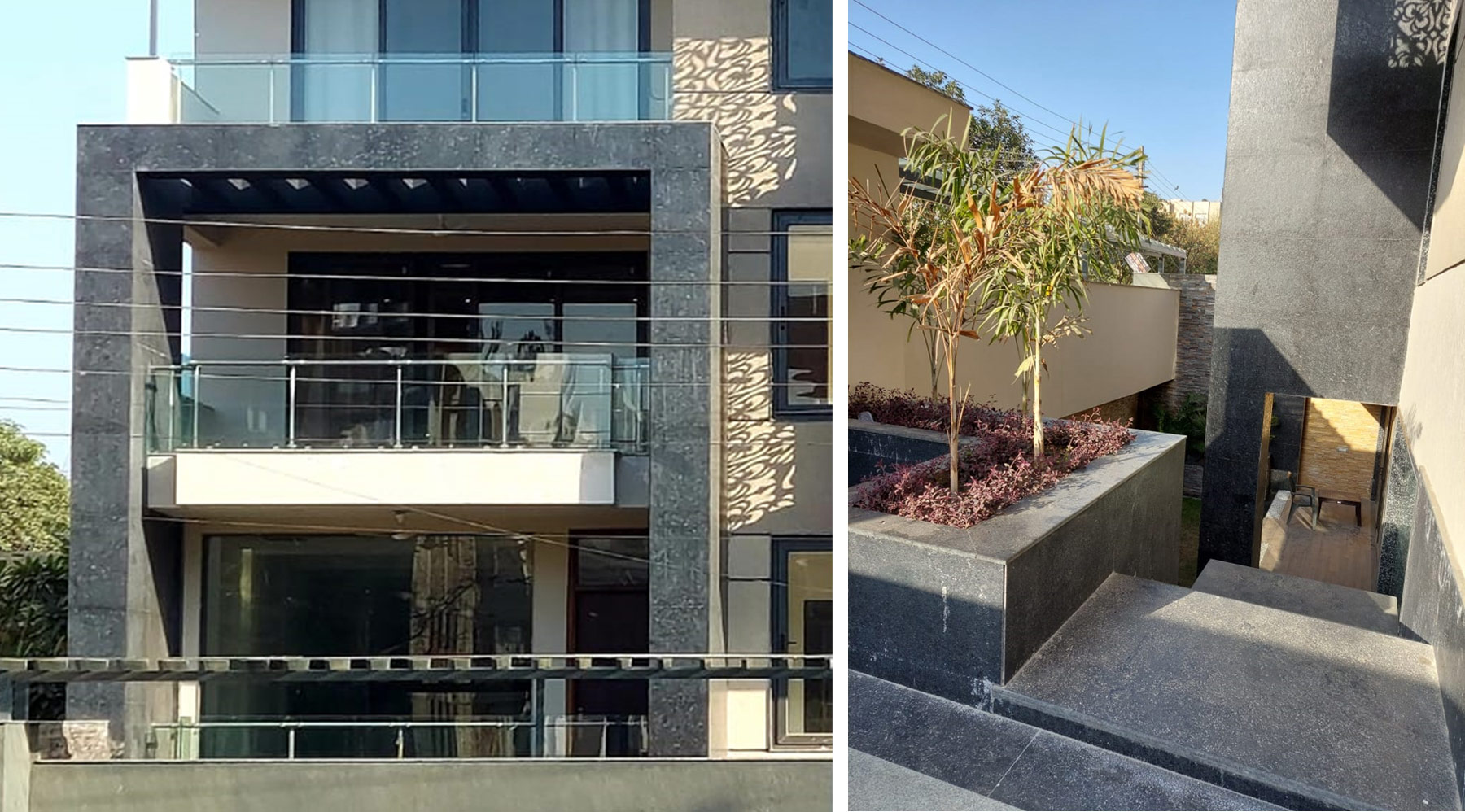 All the floors have big terraces and balconies which can be used as terrace gardens and as an extended part of the living room. The lawn at the lower ground level syncs so well with the layout and can be used as an extended living area when required. The design does not allow the eye to settle in one place and the right balance between all the elements makes it a composite and a well-planned design.