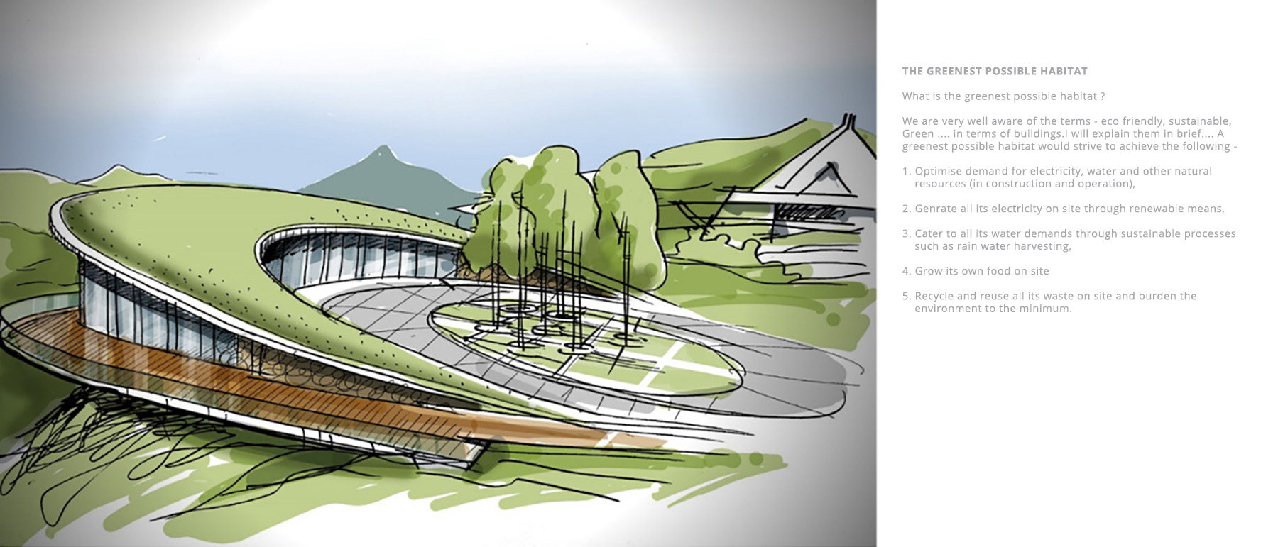 We refer to this process of design as “closing the loop”. In other words, striving to generate and utilize on-site resources to construct and operate the building and then ensuring that all the waste material is managed on-site itself.